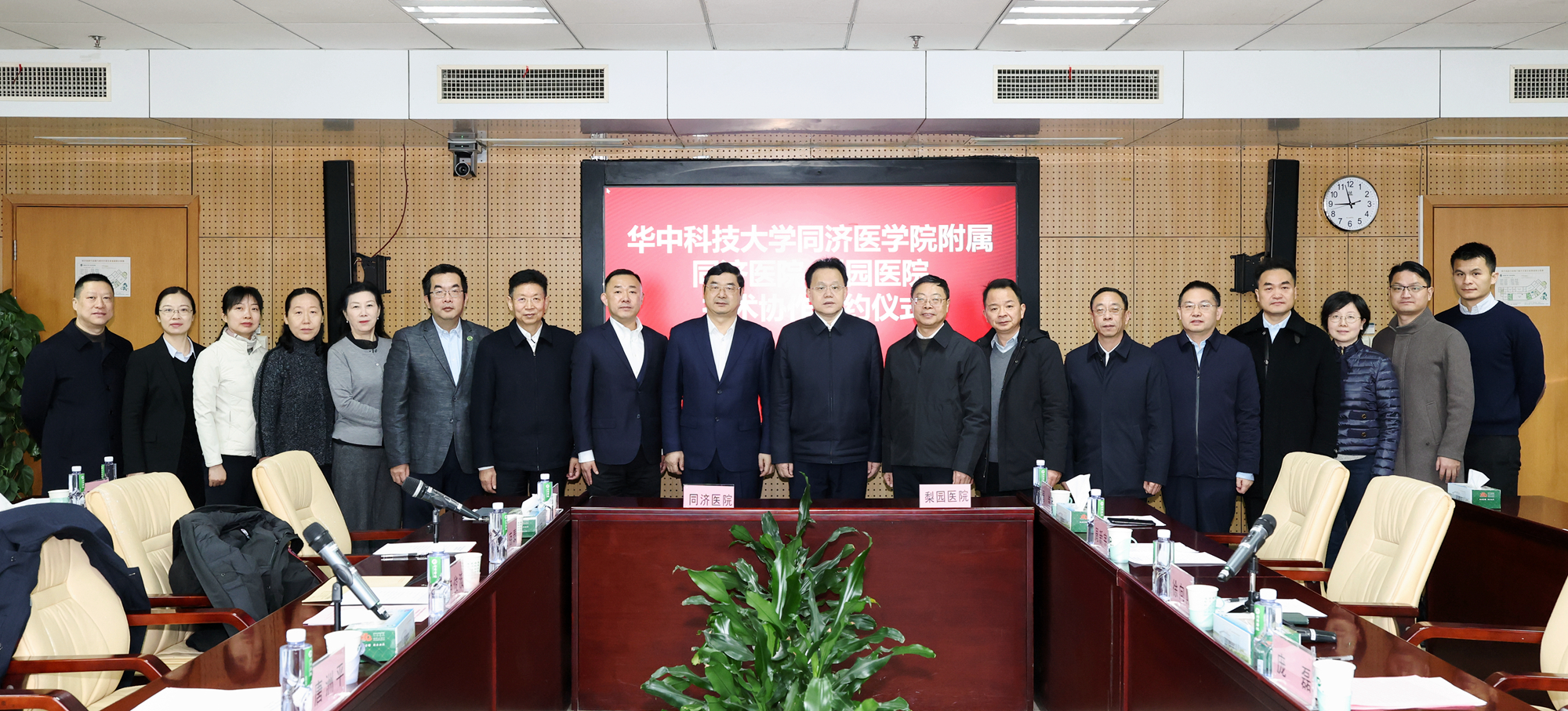 2026年2月11日,梨园医院与华中科技大学同济医学院附属同济医院技术协作签约仪式在同济医院行政楼9楼906会议室隆重举行。同济医院党委书记唐洲平、院长胡俊波、梨园医院党委书记庞磊、院长徐向阳及全体院领导班子成员等出席仪式,签约仪式由同济医院副院长吴剑宏主持。
