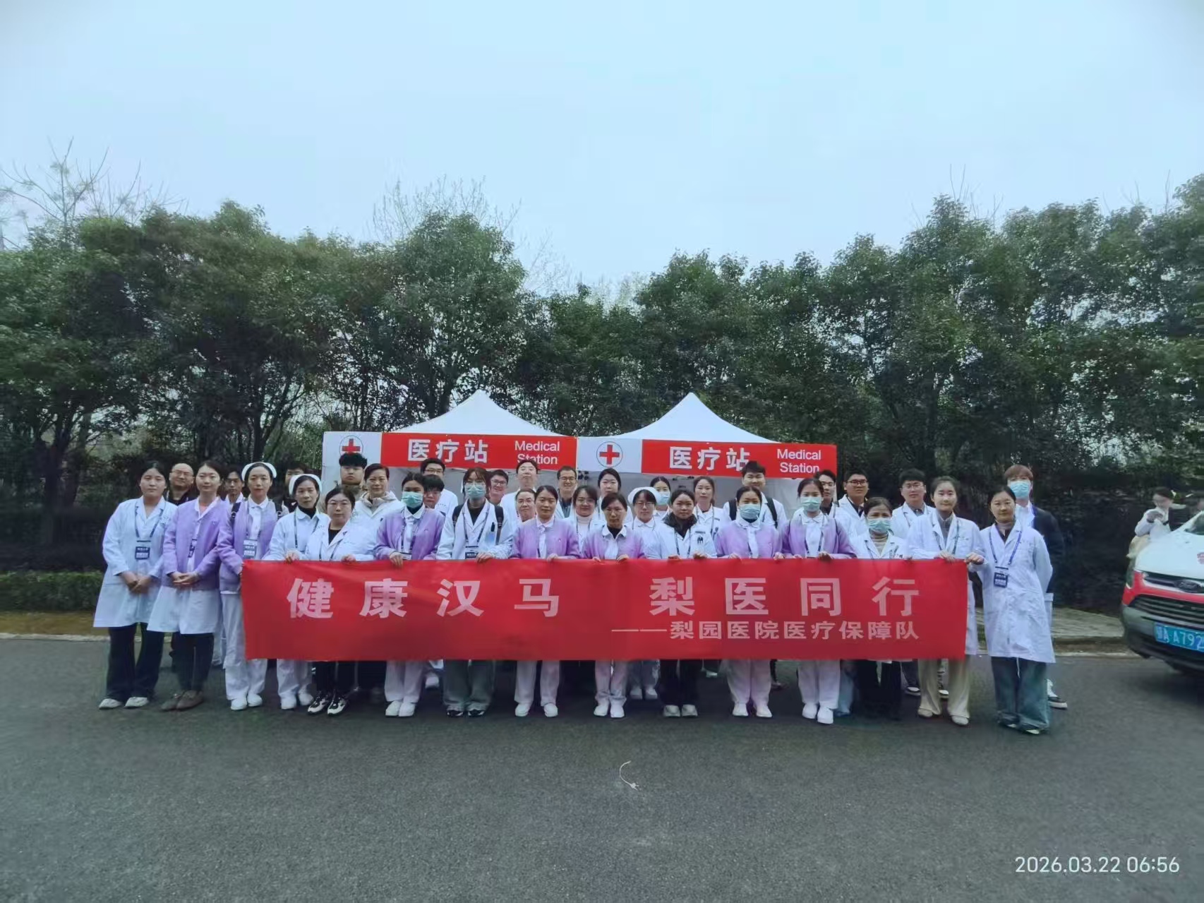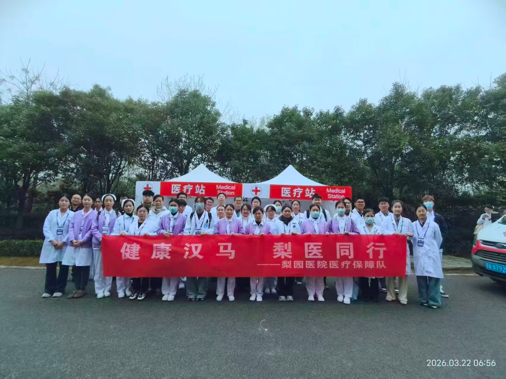 为筑牢2026汉马医疗保障防线,梨园医院高度重视、统筹谋划,组建一支由17名医生、15名护士、2名担架员及1名救护车司机组成的35人精锐医疗保障队,全面承接35公里固定医疗点、24个沿途哨点及1个急救单元的保障任务。