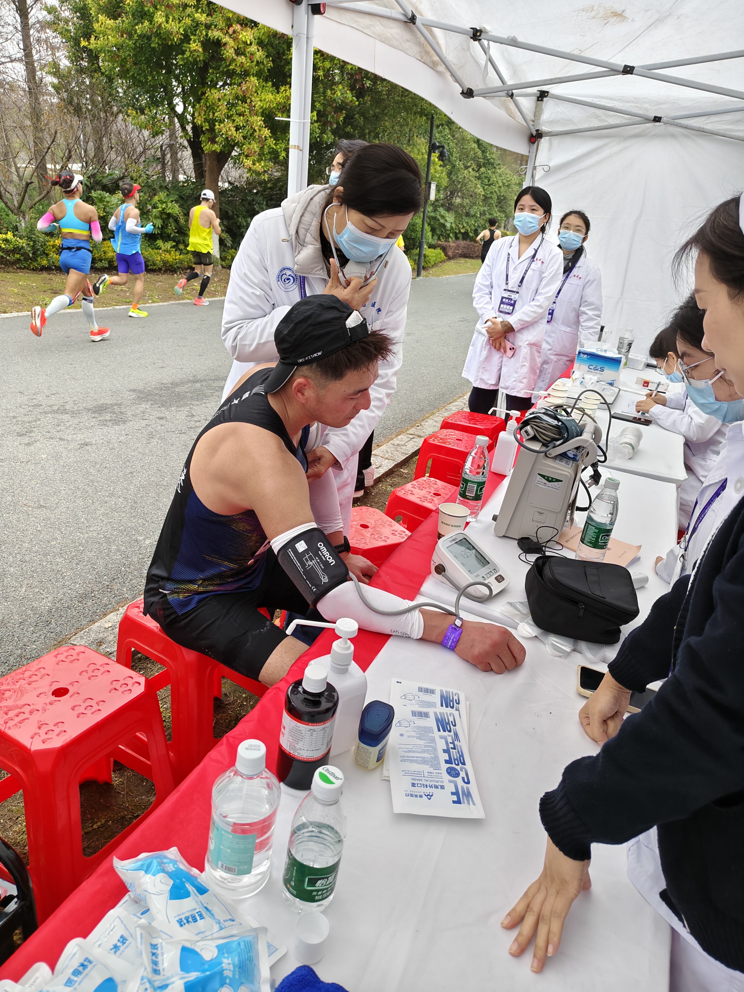 从赛事起点到完赛终点,从关键赛段到高危区域,党员医护人员始终坚守岗位、高度待命。面对高强度、长时程的保障任务,他们以专业目光紧盯跑者心率、血压与面色变化,快速甄别胸闷、胸痛、心悸、晕厥等危险信号,第一时间开展除颤、复苏等紧急救治;用温暖的安抚缓解跑者焦虑,以精准的判断化解健康风险,用实际行动践行“人民至上、生命至上”的庄严承诺。