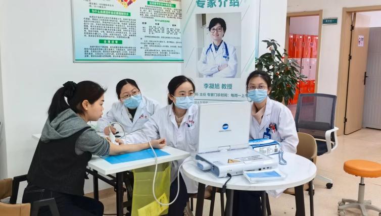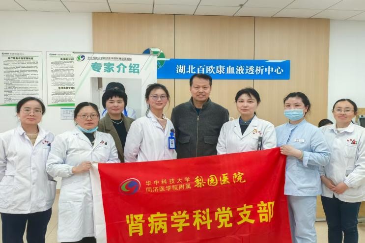 血液透析的血管通路是患者的生命线,是透析质量的保证。随着血液透析患者的增多,透析技术的提高,透龄的增长,血管通路的问题越来越多。为帮助基层透析中心患者解决血管通路问题,2026年3月28日,梨园医院肾病学科党支部及肾内科通路小组成员在支部书记李凝旭主任的带领下赴湖北省百欧康血液透析中心,以创党建品牌为引领,带动学科建设发展,惠及基层医疗机构患者,开展了一场聚焦肾脏健康的“通路筛查”专项义诊活动。
