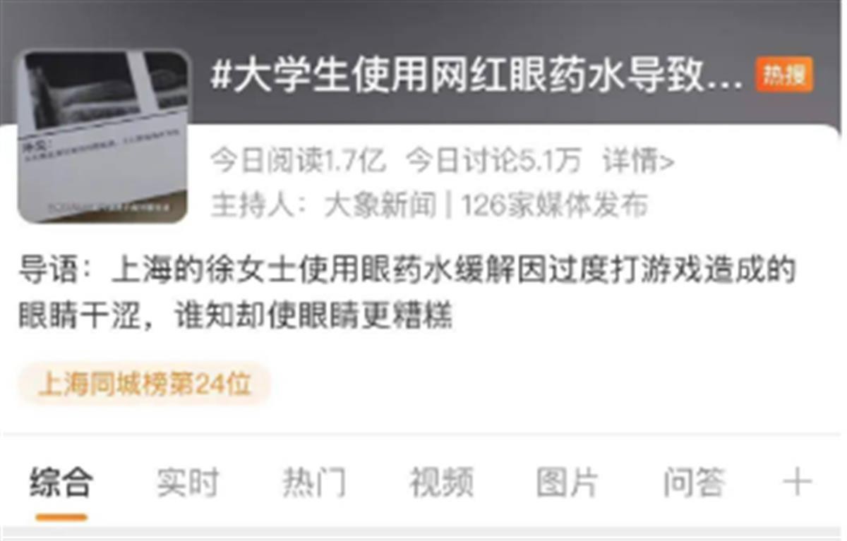 每天需要大量的用眼,很容易发生视疲劳,很多人都习惯滴眼药水来缓解,然而,凡事还得讲个度,否则眼药水用多了,对眼睛也会造成一定的伤害。近日#大学生使用网红眼药水导致角膜破损#这个新闻冲上热搜。大学生使用了过期“网红”眼药水后,出现视网膜脱离。