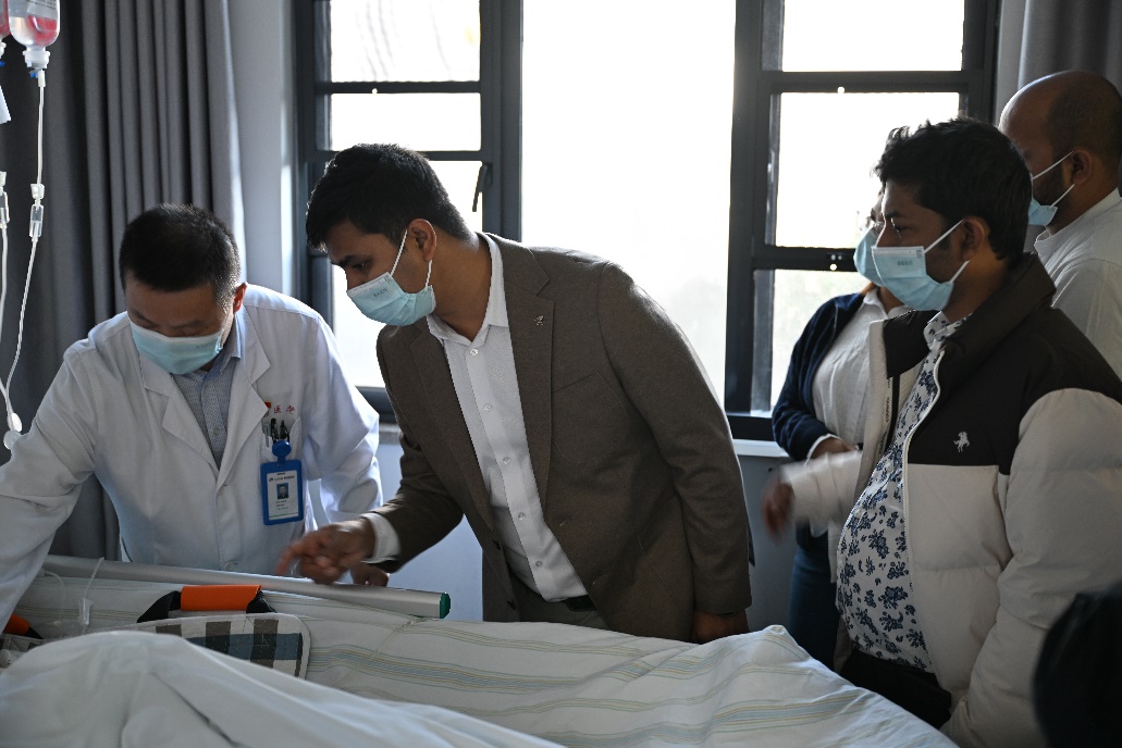 2025年11月13日上午,孟加拉国烧伤创面修复领域的5位专家专程访问梨园医院创面修复中心,开展为期半天的参观交流活动。专家团先后参观了门诊、病房、治疗室及相关教学区域,实地考察了诊疗流程与设施配置。参观后双方围绕烧伤创面修复的前沿技术、复杂病例诊疗策略、人才培养、科研合作等方面展开了深入讨论。此次参访旨在推动中孟两国在慢性创面修复领域的深入合作,提升相关诊疗技术的国际化水平。