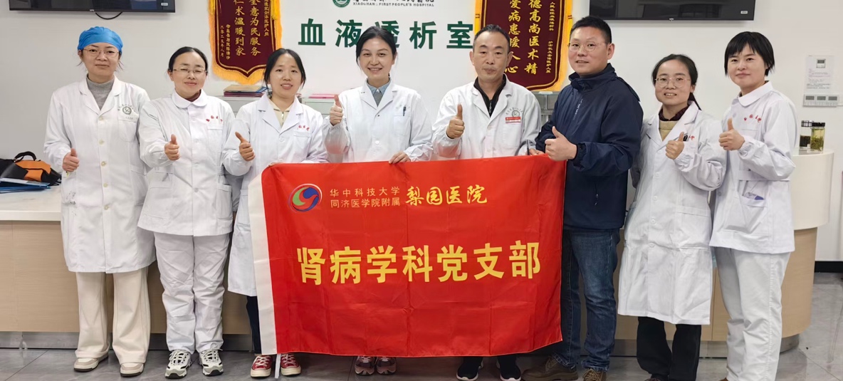 2025年是“十四五”规划收官之年,也是“十五五”规划谋篇布局之年,华中科技大学同济医学院附属梨园医院肾病学科党支部坚持以习近平新时代中国特色社会主义思想为指导,认真贯彻落实党的二十大和二十届三中、四中全会精神,聚焦公益,技术引领,以创建“红暖肾路”党建品牌为抓手,促进党建-业务深度融合。2025年12月20日在支部书记李凝旭主任的带领下赴孝昌县第一人民医院血液透析室开展透析患者血管通路筛查工作。