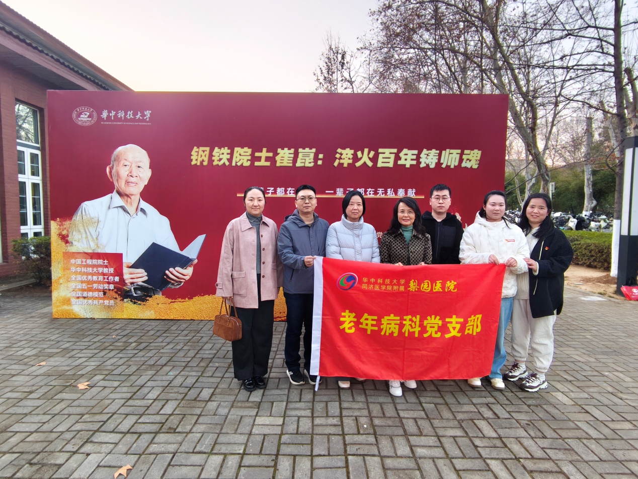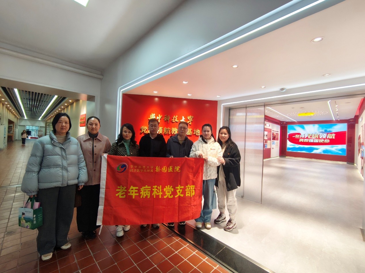 为深入学习贯彻习近平新时代中国特色社会主义思想,提升医务人员的党性修养与服务意识,2026年1月13日下午,老年病科党支部组织全体党员前往华中科技大学“党旗领航教育基地”。通过“现场研学+座谈交流”的形式,引导党员医护人员在红色基因中汲取力量,筑牢从医初心。